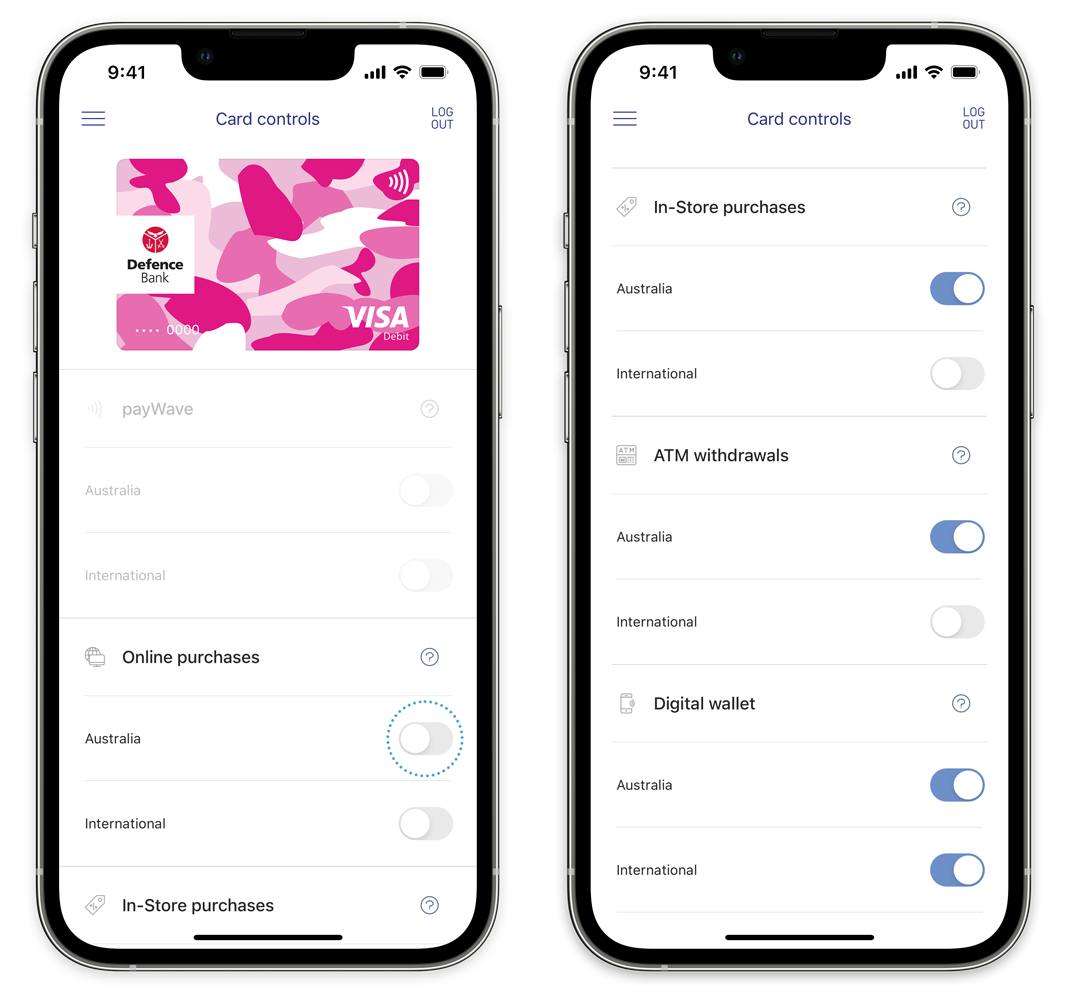 You can cancel your credit or debit card through either Online Banking or the Defence Bank mobile app.